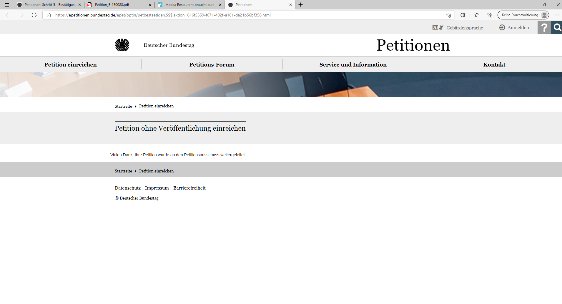 Die Petition wird jetzt im Bundestag bearbeitet. Wir hoffen durch die Übergabe der Unterschriften an ein Mitglied des Deutschen Bundestages zusätzlich einen Effekt zu erzielen. Wie schon erwähnt geht es jetzt nicht mehr nur um Tsotne, sondern um alle vergleichbaren Fälle. Vielleicht wird ja auch gerade das Vorgehen in der Pandemie überdacht.
