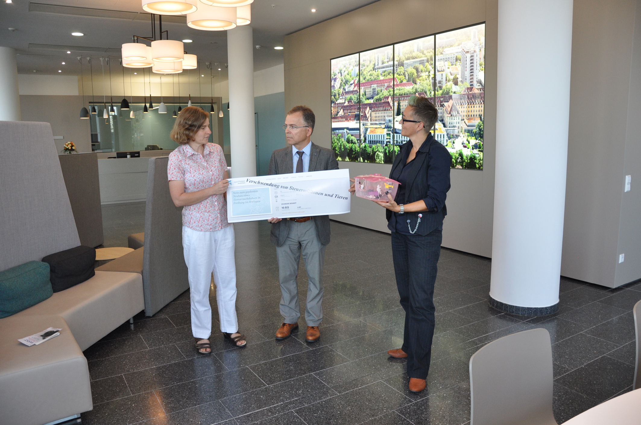 Im Namen von rund 11.000 Unterzeichnern einer Petition an Freiburgs Oberbürgermeister Dieter Salomon gegen den geplanten Neubau eines Tierversuchslabors an der Freiburger Uniklinik überreichte Dipl.-Biol. Silke Strittmatter, Pressesprecherin des Vereins Ärzte gegen Tierversuche, gemeinsam mit Ellen Gemeinhardt, Initiatorin der Petition und Unterstützerin der Tierrechts-Initiative Freiburg, am 13. September die gesammelten Unterschriften an Prof. Lutz Hein von der Uniklinik. Der grüne Oberbürgermeister lehnte es ab, sich den Belangen seiner Bürger zu widmen und beantwortete Terminanfragen abschlägig.