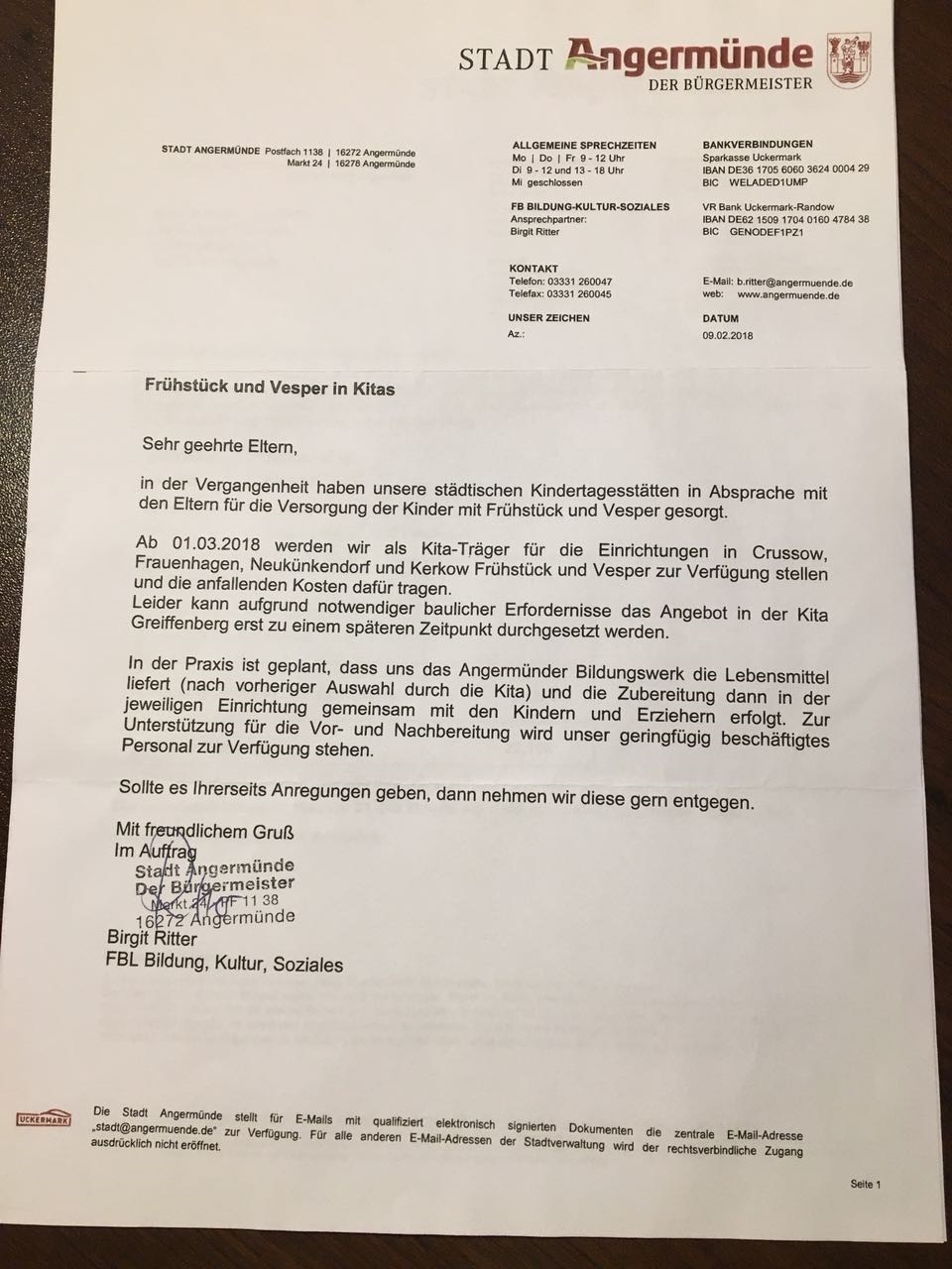 Neben unseren Bemühungen, uns gegen die geplanten Erhöhungen bei den Kita- und Hortbeiträgen zu wehren, haben wir auch mehrfach auf Fehlverhalten bei der Umsetzung des Kitagesetzes hingewiesen. Laut Kitagesetz haben Eltern neben dem Elternbeitrag nur einen Zuschuss zum Mittagessen zu zahlen, Aufwendungen für Frühstück und Vesper sind im Elternbeitrag enthalten.