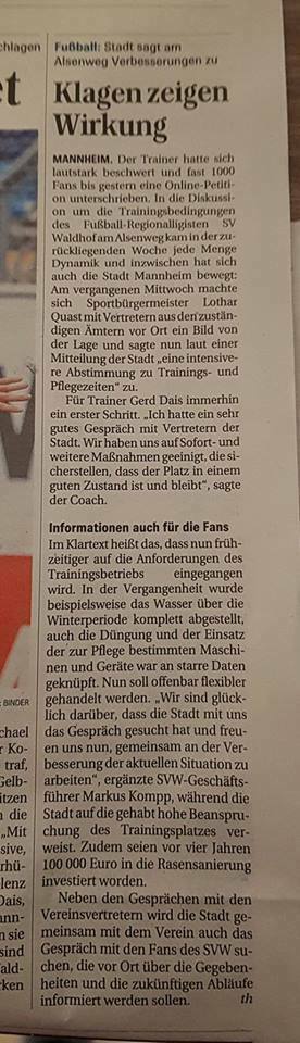 die Stadt Mannheim geht auf den SVW zu.