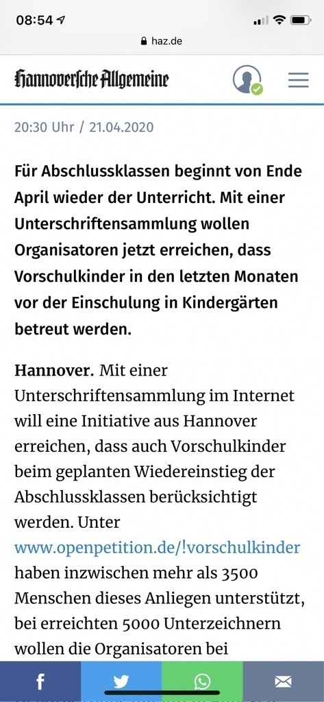 Wichtig ist, dass neben der Ausweitung der Notbetreuung (in diesem Punkt stehen wir als Eltern zunächst im Vordergrund) die Berücksichtigung der Belange der Kinder mehr berücksichtigt werden sollen. Er hatte uns daher bereits am Donnerstag bestätigt, dass die Vorschulkinder nun explizit berücksichtigt werden.