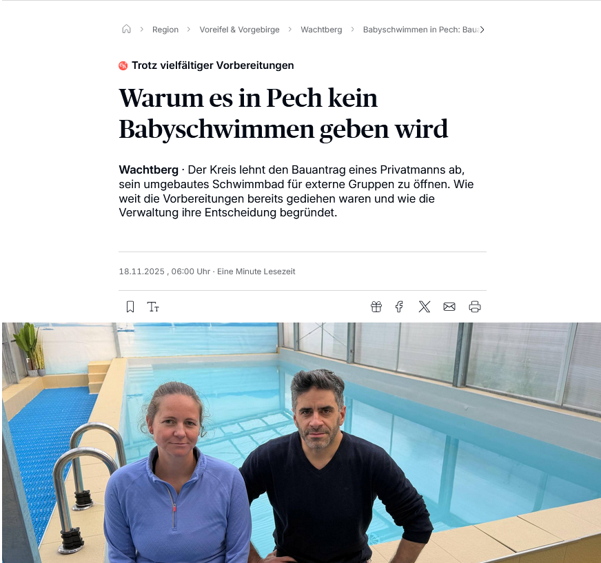 Der Generalanzeiger Bonn berichtet umfangreich unter: ga.de/region/voreifel-und-vorgebirge/wachtberg/babyschwimmen-in-pech-bauantrag-abgelehnt_aid-138732559