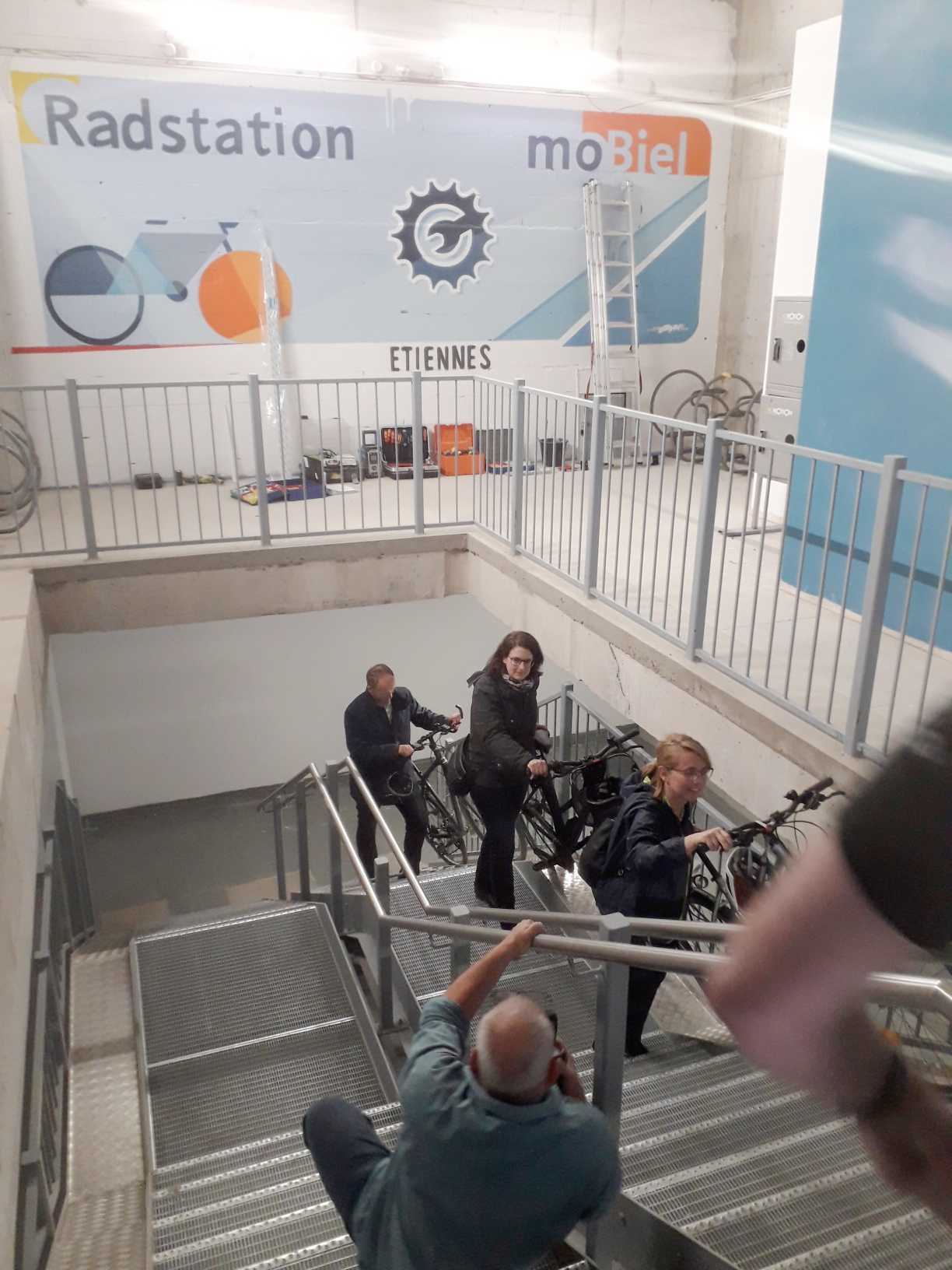 Die bisherige Radstation am Hauptbahnhof Bielefeld wurde im Februar abgerissen. Nun die Übergangslösung bis zum Neubau 2022 vorgestellt. Die gewählte Kellerlösung ist leider Substandard, da die Treppe eine starke Barriere darstellt. Statt 200 sind es nur 140 Radständer geworden. Eröffnung ist Ende Juli geplant. www.nw.de/lokal/bielefeld/mitte/22503590_Neue-Radstation-eroeffnet-endlich-Ende-Juli.html Zu wenig, zu spät.