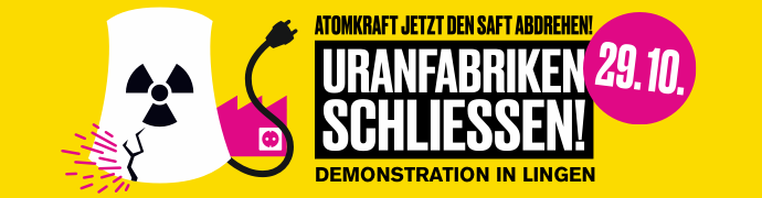 Für den Stop von Uran- und Brennelement-Transporten und für die Stilllegung der Uranfabriken ruft ein überregionales Bündnis von über 100 Initiativen, Verbänden und Parteien zur Demonstration am 29. Oktober 2016 ab 13 Uhr in Lingen auf.