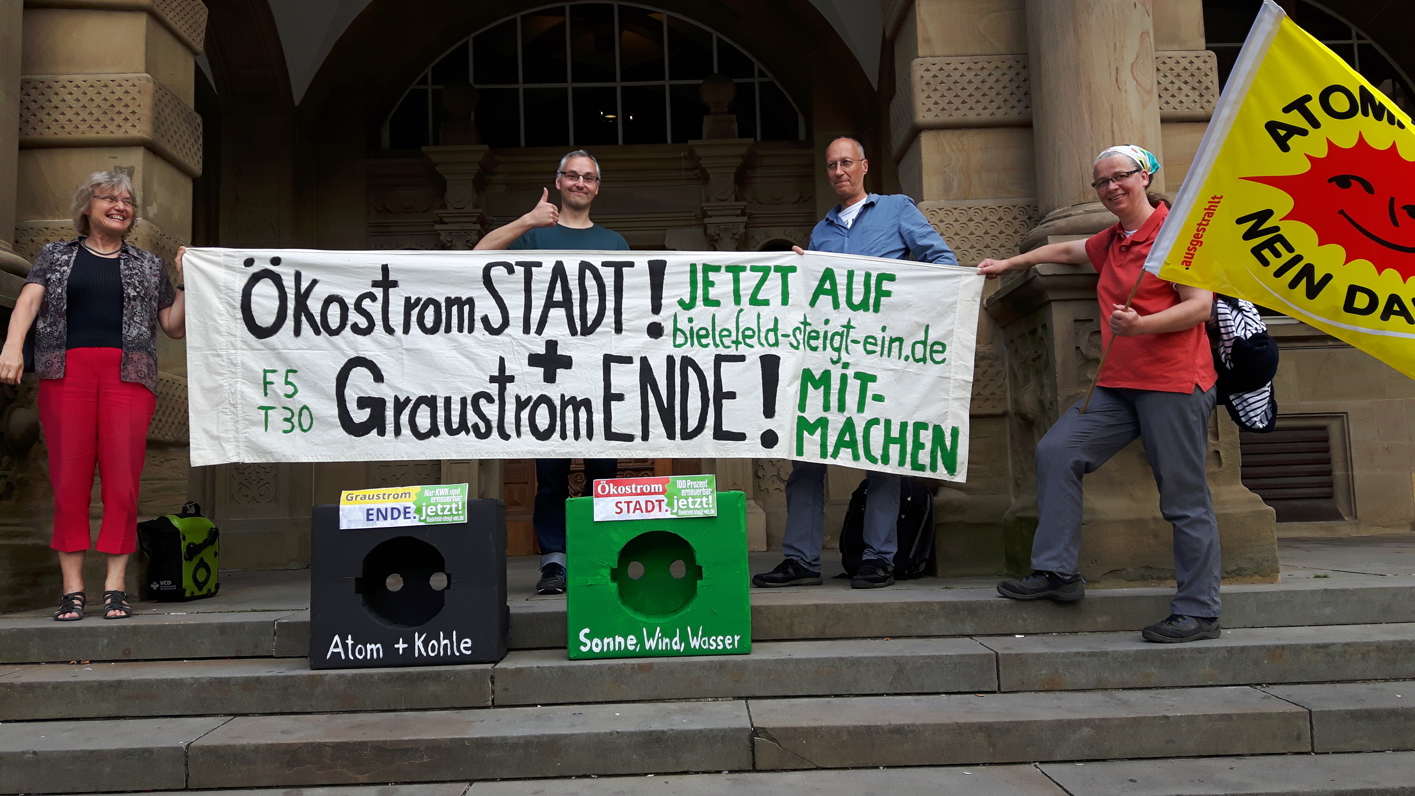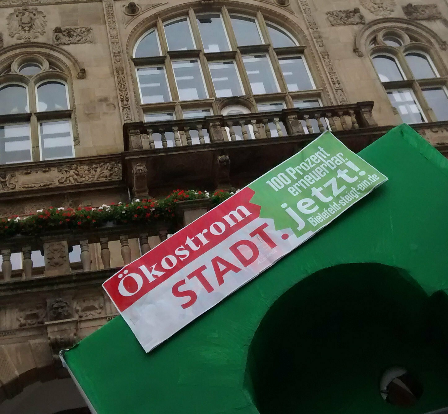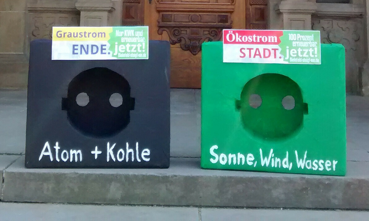 Da die Stadtwerke Bielefeld bislang aber planen, ab 2018 die Klimaziele zu verfehlen und nicht auf Atom- und Kohlestrom zu verzichten, ist es wieder mal ein passender Anlass um mit unserer „Anregung“ für die lokale Energiewende präsent zu sein.