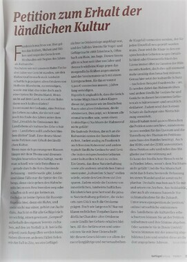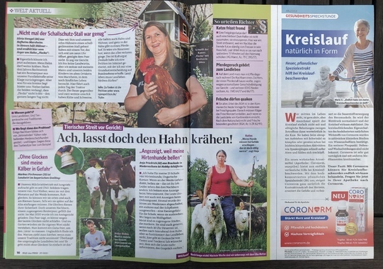 Auch die BILD der FRAU nimmt das Thema auf und berichtet mit dem Titel „Ach, lasst doch den Hahn krähen!“ zu drei unterschiedlichen Beschwerdefällen gegen Hahn, Kuhglocken und Weidenschutzhunde.