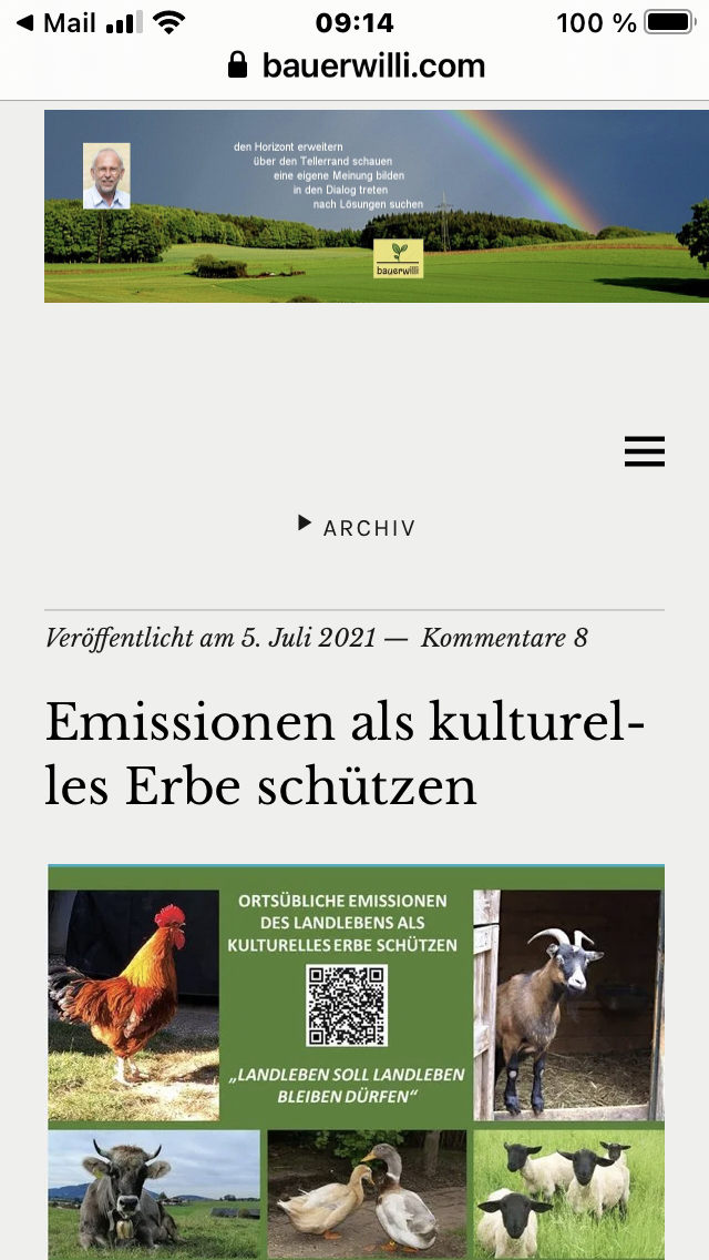 Danke an Bauer Willi für die Aufnahme der Petition zum Schutz des Landlebens auf seiner Internetseite!👍💪🤗