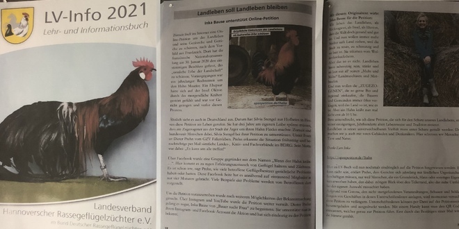 Danke an den Landesverband Hannoverscher Rassegeflügelzüchter e.V. zur Aufnahme der Petition in der aktuellen Ausgabe der LV-Info!