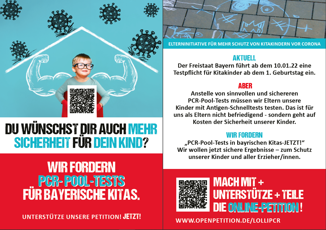 Unsere hiesige Erfahrung zeigt, dass es sehr wichtig ist, die lokalen Gremien direkt anzusprechen - sei es die Leitung oder den Träger Ihrer Einrichtung aber auch die lokale Politik wie Gemeinde-, Bezirks- oder Stadtrat. Suchen Sie zeitnah im neuen Jahr das Gespräch und versuchen Sie herauszufinden, ob es die Bereitschaft für die Einführung von Pooltests gibt. Und sollten sie auf Ablehnung oder Zurückhaltung bei diesem Thema stoßen, dann lassen Sie nicht locker! Gerne stellen wir Kontakte zu Einrichtungen her, die bereits erfolgreich Pooltests in Kindergärten durchführen. Der Erfahrungsaustausch und das Gespräch auf Augenhöhe zwischen Kindergartenleitungen hilft ungemein viel, um Berührungsängste oder Unklarheiten bei der Einführung von Pooltests auszuräumen. Gerne können Sie mich hierfür über die Petition kontaktieren.