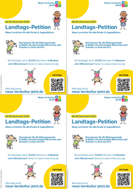Bitte nutze diese außergewöhnliche Chance für Kinder & Jugendliche und unsere Demokratie etwas in Gang zu setzen! Hilf bitte mit, die Landtagspetition neue Lernkultur - Jetzt! in die Breite zu tragen.