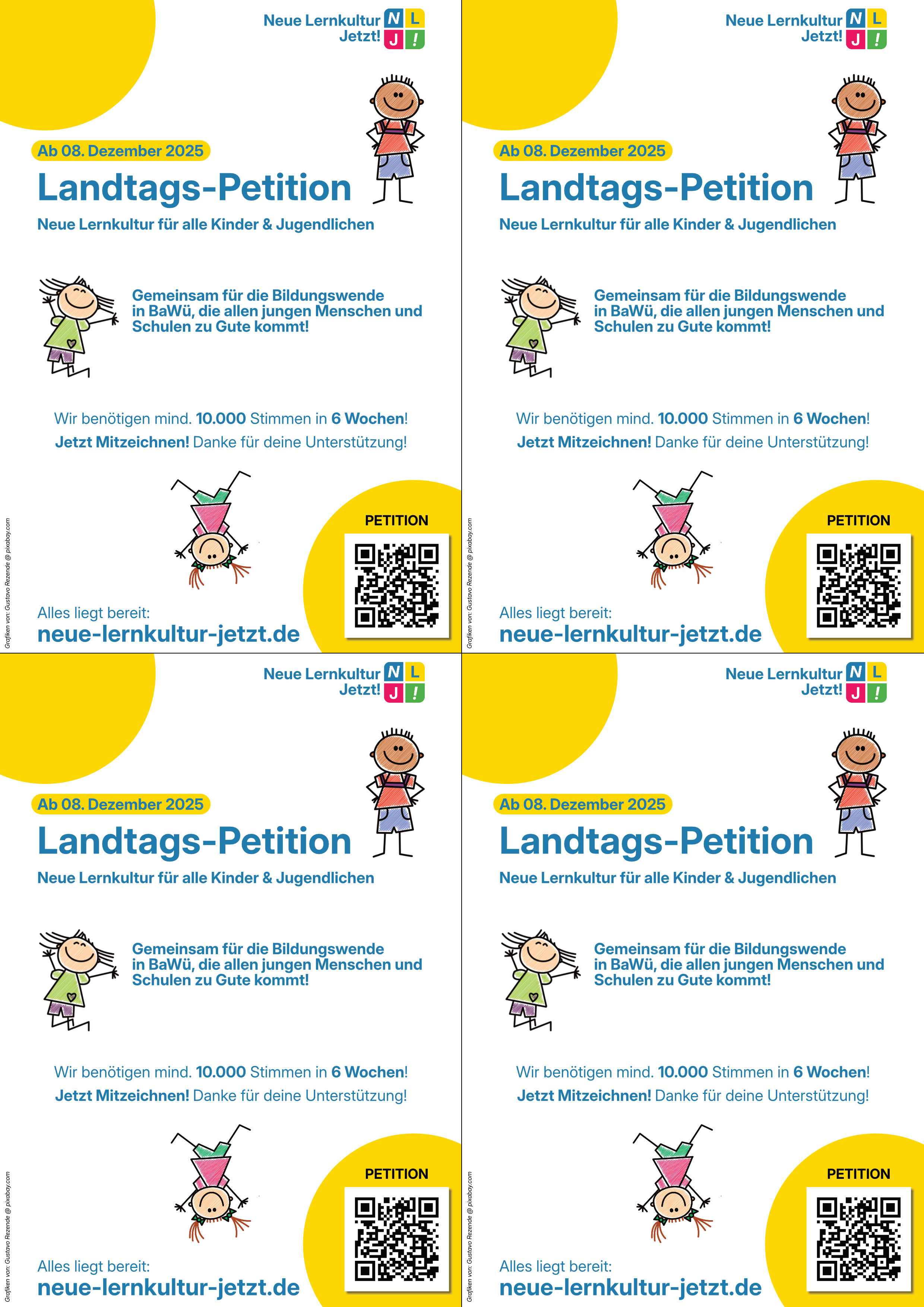 Am Do, 11.Dezember 25, werden wir um 13 Uhr in Stuttgart vor dem Landtag das Anliegen dem Petitionsvorsitzenden Herrn Marwein persönlich übergeben. Wer dabei sein möchte, ist herzlich eingeladen! Es gilt die Bannmeile um den Landtag, das wird also keine Demo - wir wollen einfach Präsenz und Entschiedenheit zeigen. Die bildungspolitischen Sprecher der demokratischen Parteien, sowie Presse und SWR Fernsehen werden angeschrieben und dazugebeten.