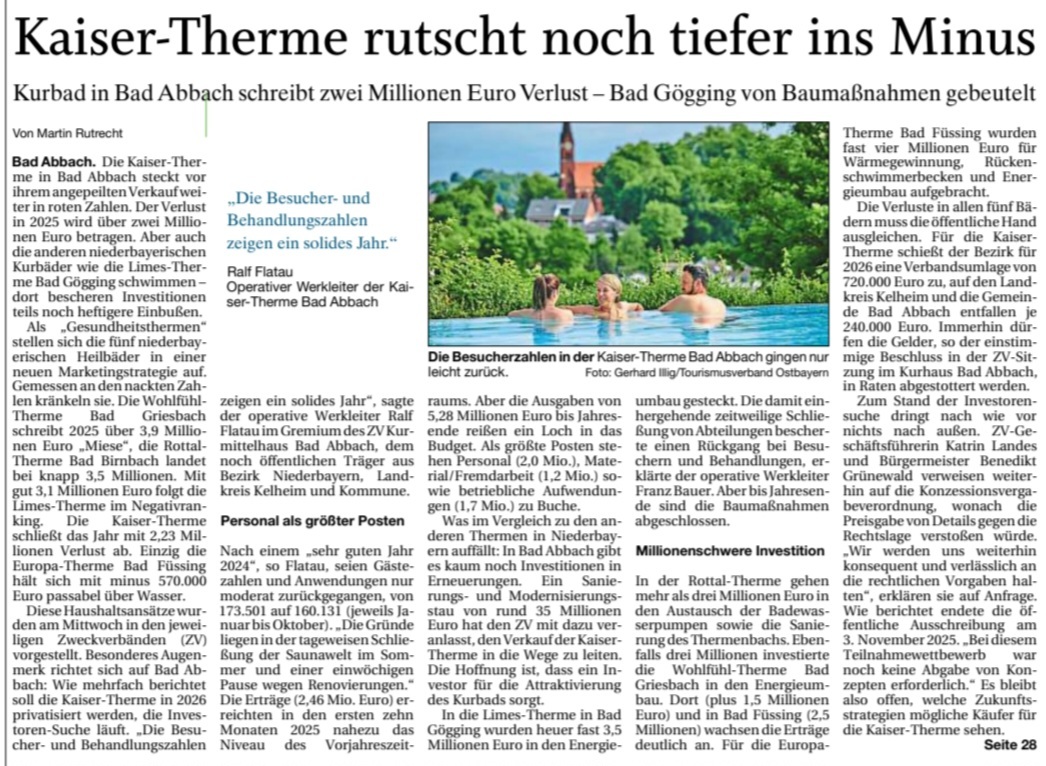 4 der 5 niederbay. Thermen schreiben tiefrote Zahlen. Die Kaiser Therme