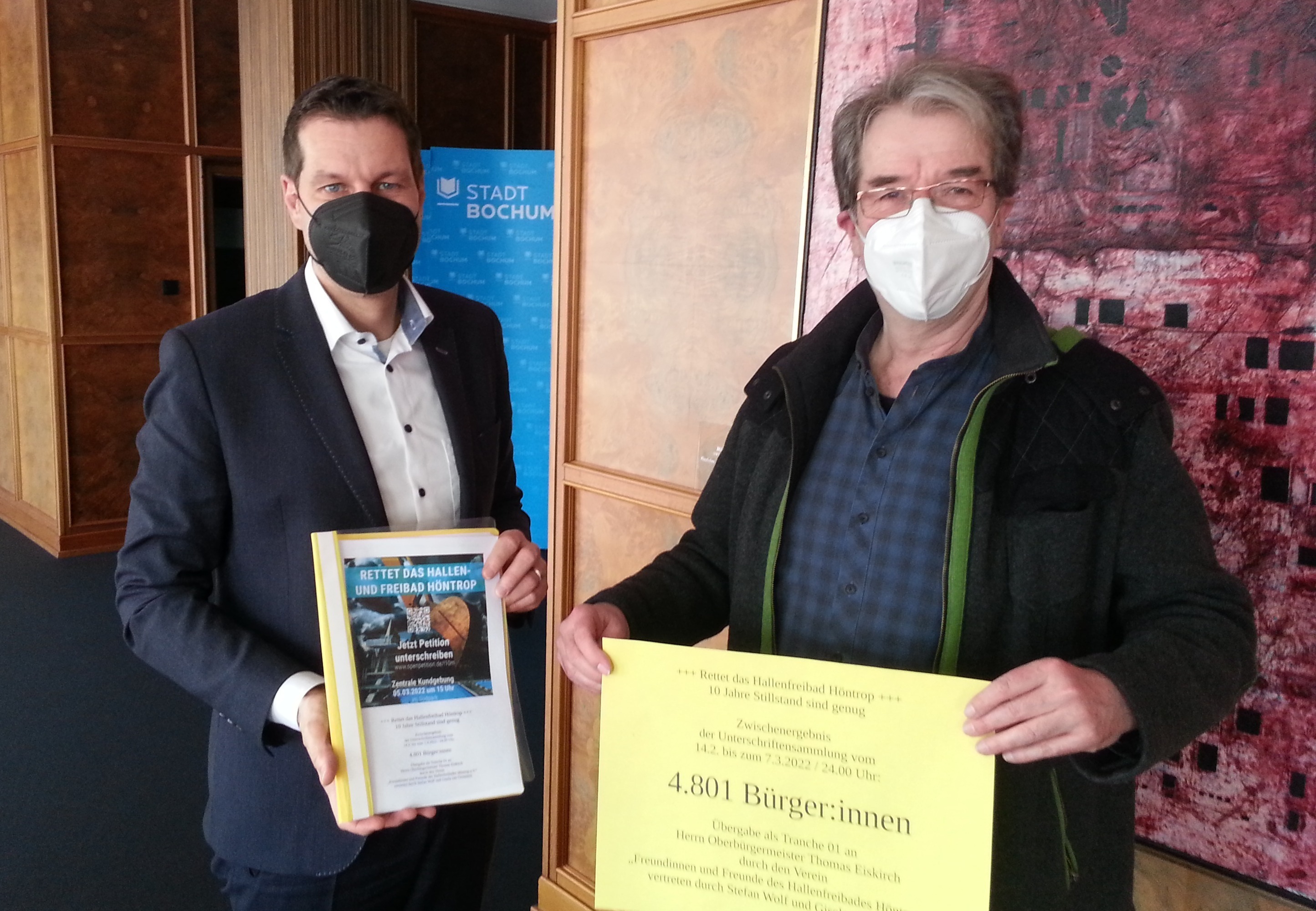 Dazu ist es noch nicht zu spät, es gibt eine einfache Möglichkeit: Lassen Sie die Bürger:innen Bochums über ihre Freibäder selbst bestimmen, in einer fairen, unabhängigen und geheimen Wahl. Setzen Sie sich doch bitte dafür ein, dass ein Ratsbürgerentscheid in dieser die Bochumer:innen stark bewegenden Angelegenheit stattfinden möge!