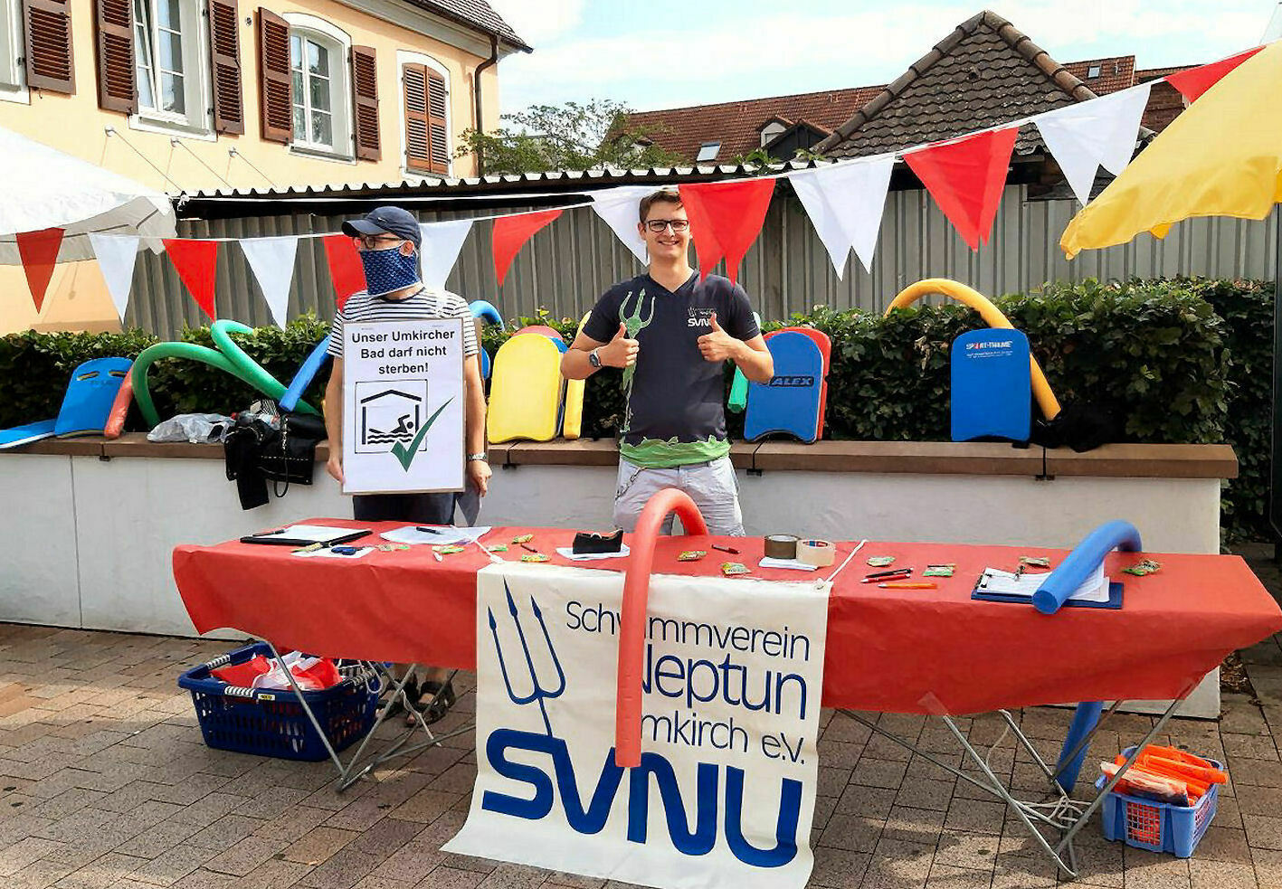Seit 1977 ist das Bad Heim und Trainingsstätte des Schwimmvereins Neptun Umkirch e.V. (SVNU, www.svnu.de). Der Verein ist mit ca. 500 Mitgliedern einer der größten Vereine Umkirchs. Er bietet in etwa 20 Trainingsgruppen den Kindern und Jugendlichen Schwimmsport im Freizeitbereich; in 3 Leistungsgruppen und der Wettkampfmannschaft trainieren die Schwimmerinnen und Schwimmer auf Leistungssportniveau. Die SVNUler konnten auch einige Wettkampferfolge verzeichnen; die Teilnahme eines Umkircher Schwimmers an den Deutschen Jahrgangsmeisterschaften 2019 in Berlin (www.svnu.de/cms/index.php/nachricht/leon-moerch-glaenzt-in-berlin.html) ist da sicherlich herausragend. Neben den Jugend-Trainingsgruppen gibt es auch Trainingsgruppen für Erwachsene sowie Aquafitness-Angebote. Dabei ermöglicht es der Verein auch Kindern mit Behinderungen soweit möglich inklusiv an den Kursen teilzunehmen. Eine reine Frauen-Schwimmgruppe bietet auch muslimischen Frauen und Frauen, die ohne Öffentlichkeit schwimmen wollen die Möglichkeit, bei uns zu schwimmen – ein Beitrag zur Integration.