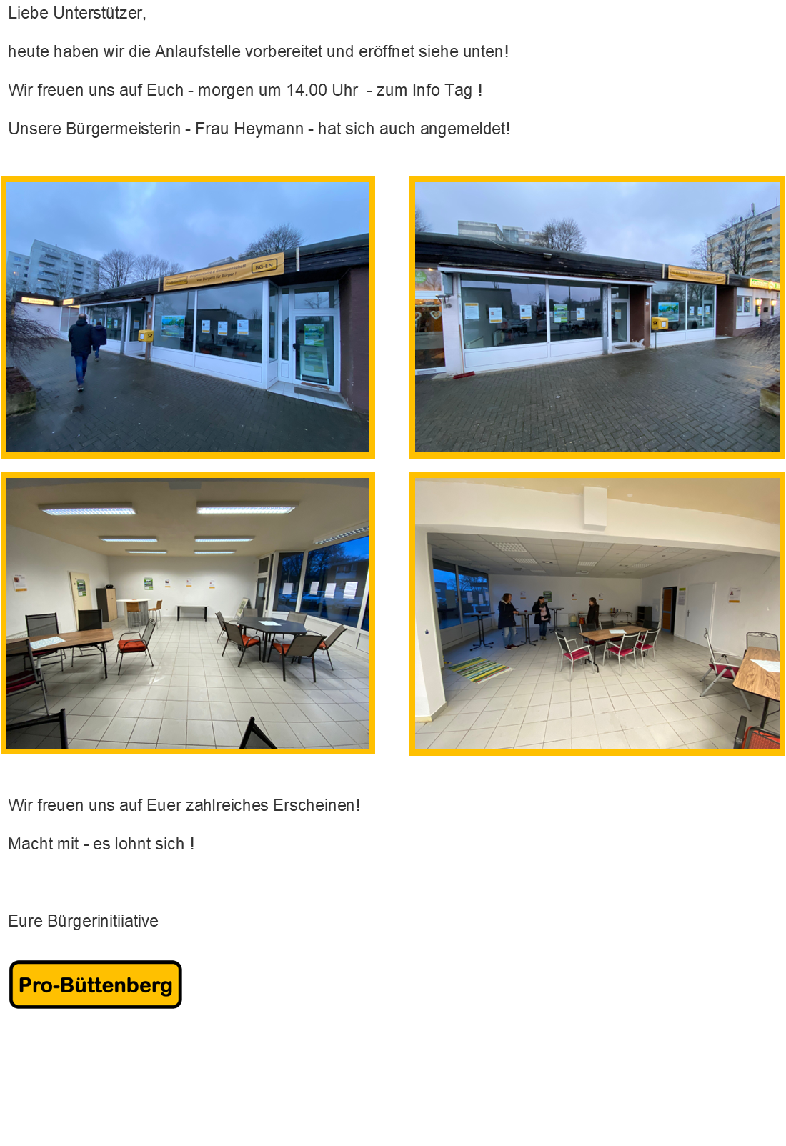 Es zeigt mehr, für was wir stehen wollen: Positiv für die Entwicklung des Ortsteils. Es gibt mehr zu tun, als nur das Projekt " Ladenzeile" es kommt auch die "Industriebrache Hembeckertal Strasse" usw... Ihr erreicht uns unter der Seite www.pro-büttenberg.de