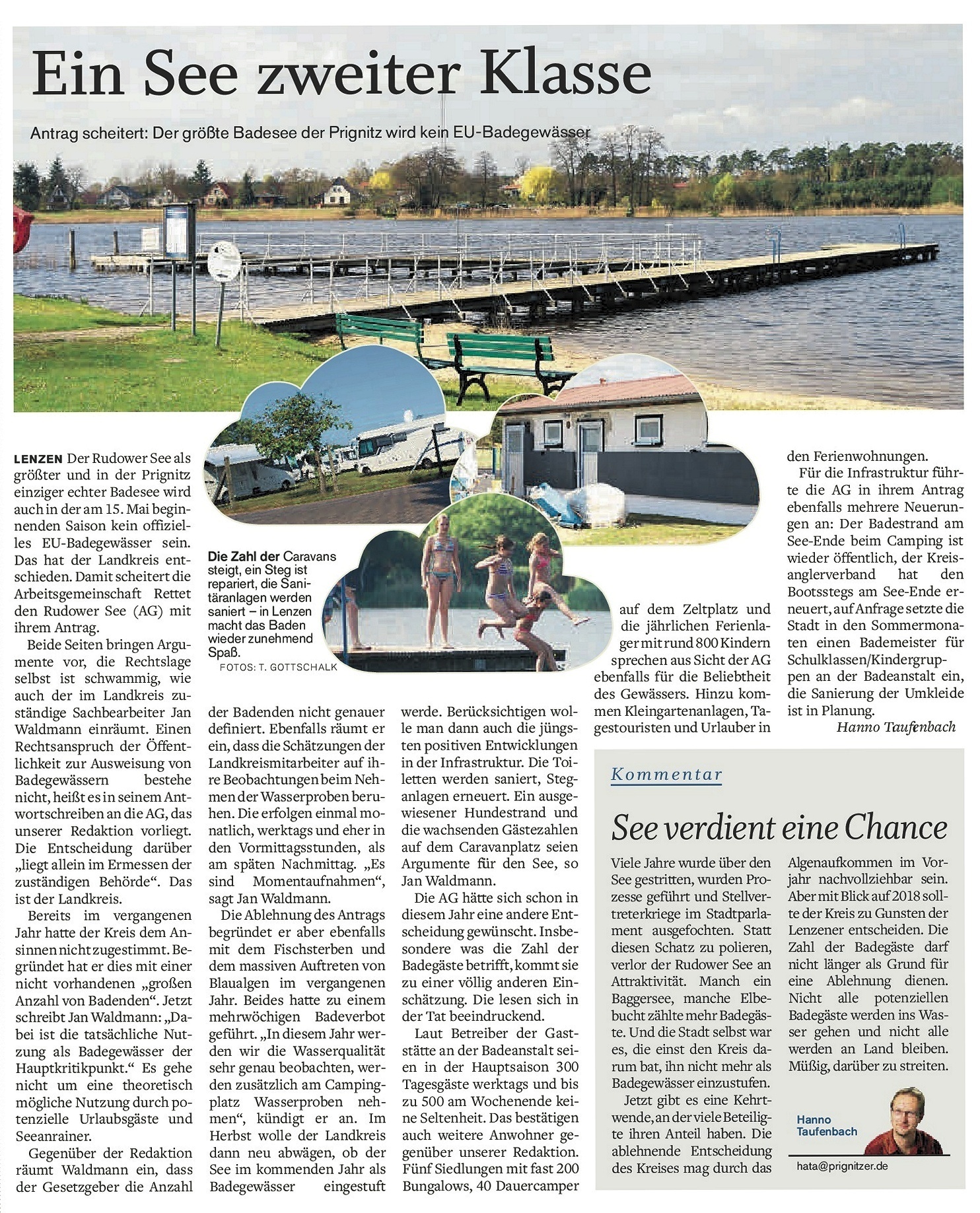 In seinem Kommentar schreibt Hanno Taufenbach von einem Hoffungsschimmer. Hoffen wir alle, dass die Verantwortlichen (falls sich denn jemand verantwortlich fühlt) endlich aufwachen und sich für Lenzen und den Rudower See einsetzen. Der Rudower See muß für die Bevölkerung und den Tourismus erhalten bleiben, Privatinteressen haben zurückzustehen!