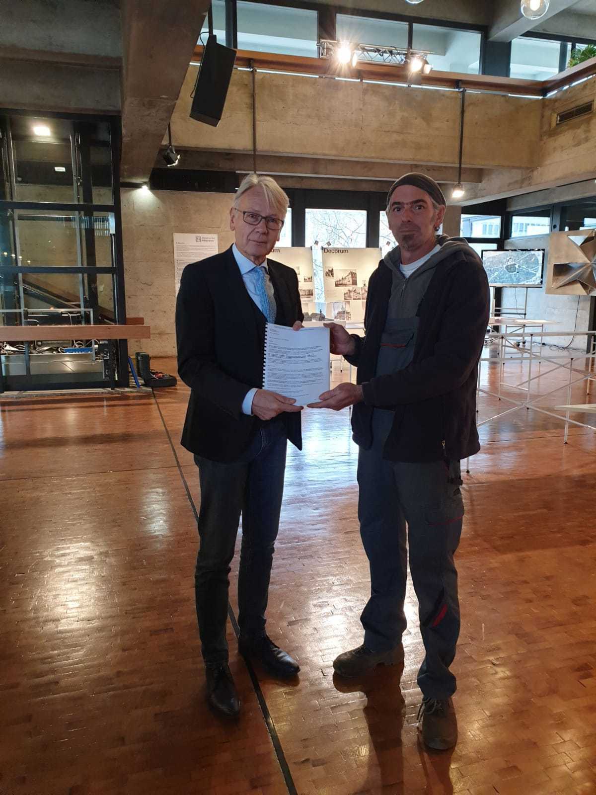 am 11.11. hat unser Sprecher, Kai Theisinger unsere/ eure Unterschriften – die innerhalb von 3 Monate gesammelt wurden und sich auf insgesamt 3146 Unterschriften, davon 2237 aus dem Stadtgebiet Kaiserslautern summieren, dem Oberbürgermeister der Stadt Kaiserslautern öffentlich übergeben.