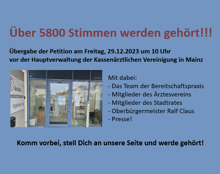 Unsere Petition gegen die Schließung unserer Bereitschaftspraxis ist noch keine 2 Wochen alt und hat bereits über 5000 Unterzeichnungen erreicht!