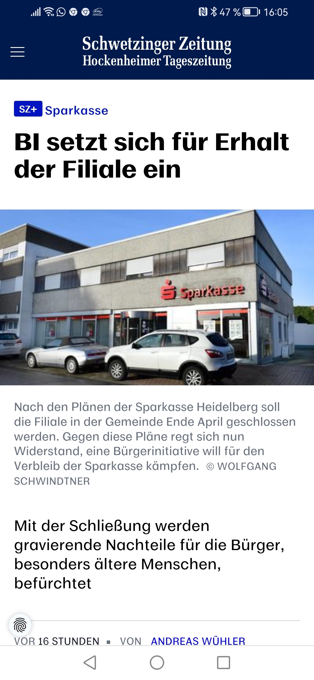 Am 31.12.2022 erschien ein Artikel in der Schwetzinger Zeitung mit dem Titel "BI setzt sich für den Erhalt der filiale ein" von Andreas Wühler, der unsere Sache sehr gut darlegt.