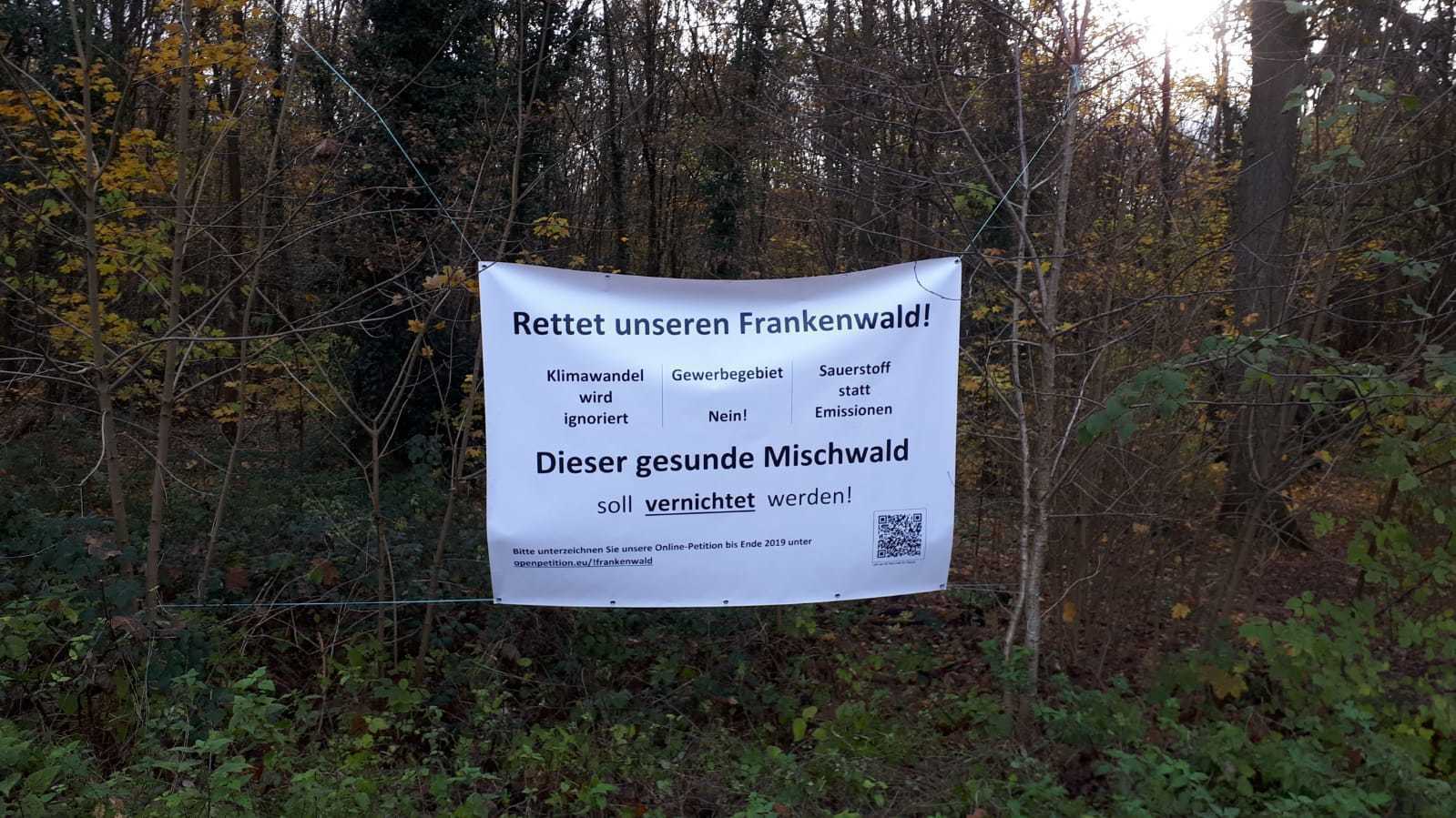 Bringt auch gerne kleine Pappschilder mit Euren Botschaften mit: warum ihr den Frankenwald erhalten wollt. Einige dieser Schilder hängen bereits heute in den Bäumen und geben ein schönes Bild ab.
