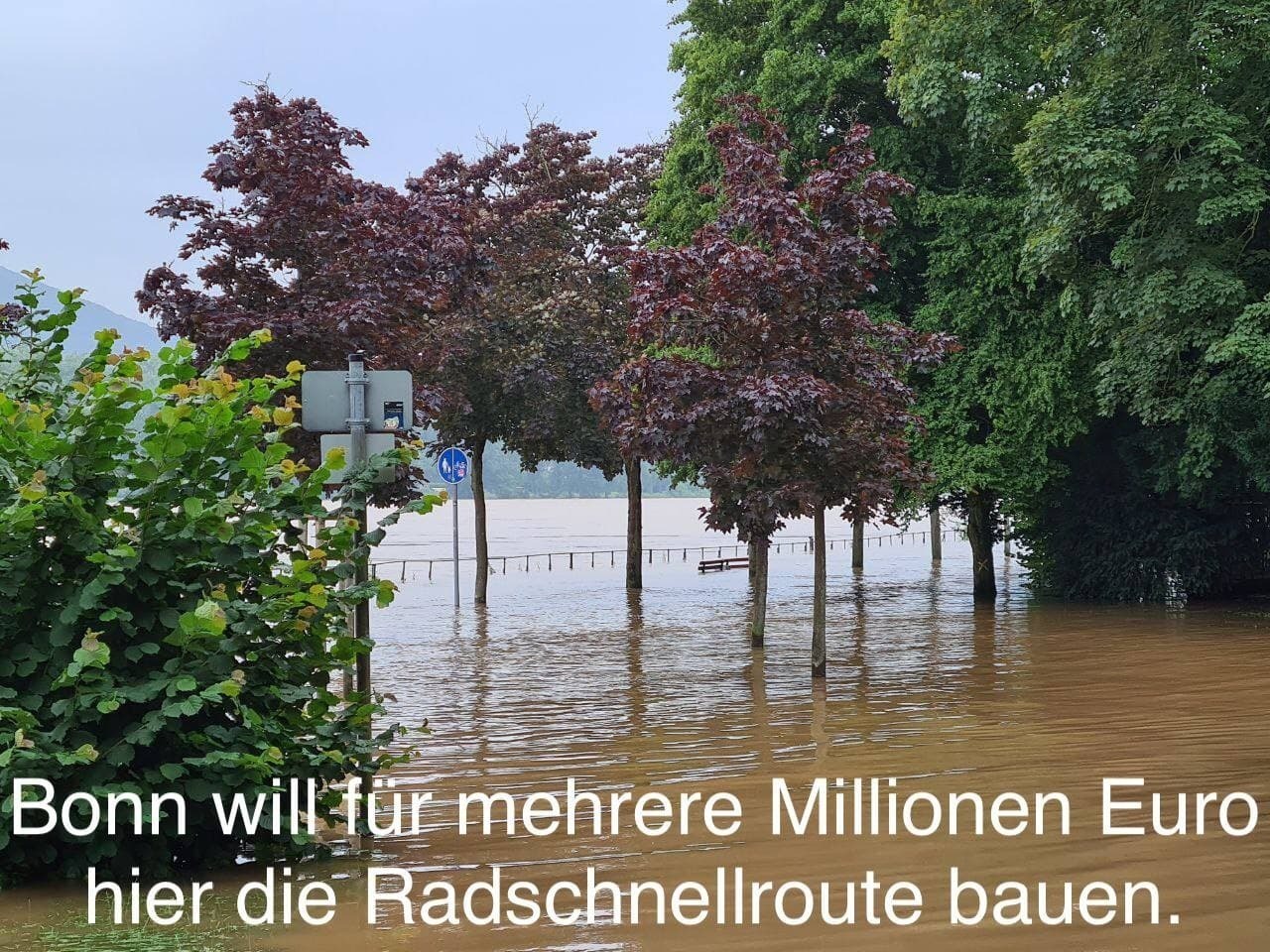 Die jüngsten, tragischen Starkregen und Flutkatastrophen in unserer Umgebung und in anderen Ländern zeigen uns sehr eindringlich, wie wichtig Fluss-Auen, Grünflächen und Bäume für den Hochwasserschutz sein können - wie schädlich Flachenversiegelungen für die Versickerung des Regens und Hochwassers sind. Unsere Rheinaue gilt als wichtiges Überflutungsgebiet am Rhein und ist Schutz für viele von uns. Welch ein Irrsinn, dort mehrere Millionen Euro unserer Steuern zu vergeuden für einen riesigen Radschnellweg, der zunehmend unter Hochwasser stehen wird.