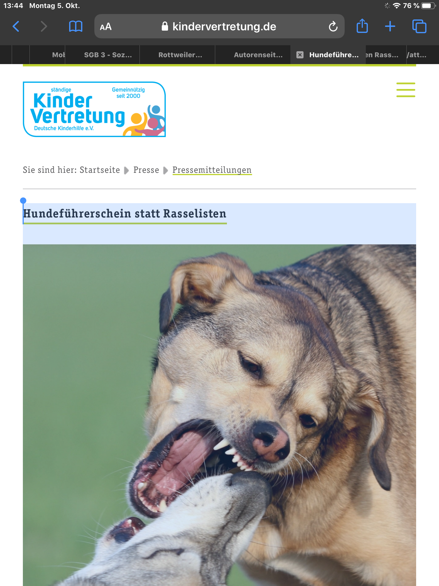 Die Deutsche Kinderhilfe – Die ständige Kindervertretung e.V. plädiert gemeinsam mit der stellvertretenden Landesbeauftragten für Tierschutz des Landes Baden-Württemberg, Ariane Désirée Kari, und dem Berufsverband für Hundeerzieher/innen und Verhaltensberater/innen (BHV) e.V. für die Einführung eines verpflichtenden Hundeführerscheins und die Abschaffung der Rasselisten.