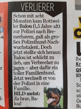 Nachdem er sich wohl nicht aggressiv genug hat machen lassen, genetisch, wesensmäßi bedingt, kommt er nun in eine Familie und darf ein „normales Rottweilerleben“ führen. Dennoch gilt er in vielen Bundesländern als rassebedingt genetisch gefährlich und wird dort als Listenhund geführt! Die Besitzer müssen mit ihm regelmäßig zum Wesenstest und ihre Sachkunde nachweisen!!! Das ist keine Willkür? Keine Diskriminierung...??? Positive Ergebnisse der Wesenstests, Erfahrungen der Wesenstester haben keinen Einfluss auf die stoische Beibehaltung der Listenhundregelung und Argumentation durch wenige Politiker und Ihre Ministerien??? Das Bundesverfass7ngsgerichtsurteil von 2004 mit dem Beobachtungsgebot wird nicht pflichtgemäß beachtet??? Alles zu Lasten der wesensfesten, gutartigen Hunde...🤔🤗🙁