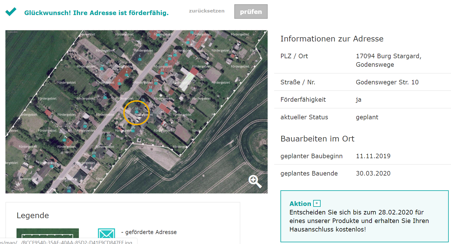 Auf folgender Seite kann geprüft werden, ob man gefördert wird und wann der Ausbau beginnen wird.