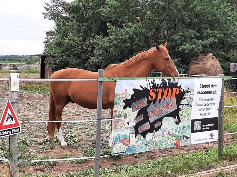 Hallo zusammen, leider muss der angekündigte Infostand für morgen ausfallen. Hier ein Blick auf ein frisch gedrucktes Plakat unserer Künstlerin Frau Schneider. Selbst das Pferd ist unserer Meinung.