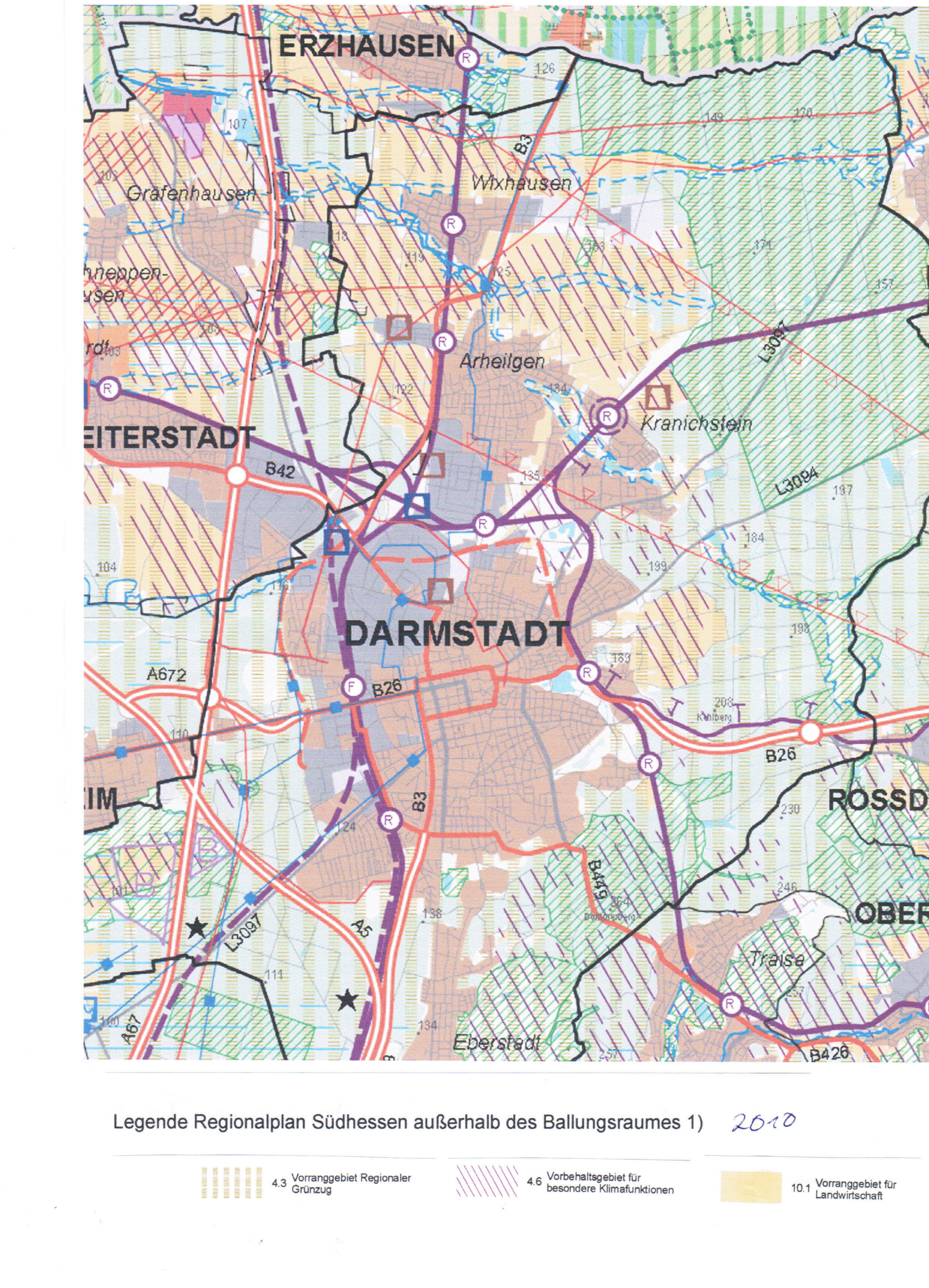Ich leite diese Info an die Petitionszeichner*innen weiter, weil sich darunter sicher auch viele Nutzer der 100ha großen Fläche Wixhausen Ost befinden dürften. Sei es zur Naherholung, Reiten, Joggen, Sonntagsspaziergang oder auch wegen dem weiten Blick über eine abwechslungsreiche Fläche bis hinüber zu den Silzbachauen. Also sozusagen das erweiterte Wohnzimmer. Auf der Suche nach Infomaterial ist mir die oben angezeigte Karte der Regionalversammlung Südhessen begegnet. Gemeinsam mit dem 10m breiten Schutzbereich um die Silzbachauen wird dem Areal eine schutzwürdige Klimafunktion , der Vorrang der landwirtschaftlichen Nutzung und seine Eigenschaft als regionaler Grünzug bescheinigt.Aus der Petition wissen wir dass noch andere Eigenschaften hinzukommen: Grundwasserneueintrag über Regenwasserversickerung, Naherholung, geschützte Tierarten wie der Kiebitz.