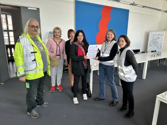 Cornelia Zuschke, der Planungsdezernentin der Stadt Düsseldorf im Rathaus, eine Liste von 874 Unterschriften von Bürgern aus dem Düsseldorfer Norden überreicht. Die Unterzeichner wenden sich gegen die Bebauung eines großen und bedeutenden Naturgeländes durch die Kaiserswerther Diakonie.