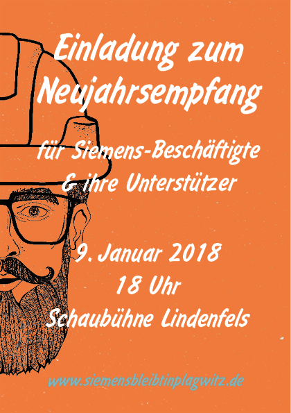 Wir wollen uns bei allen Aktiven bedanken und laden Sie herzlich zum Neujahrsempfang für Siemens-Beschäftigte und ihre Unterstützerinnen und Unterstützer ein.