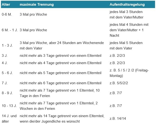 Ein Kind darf nicht mehr Tage von einem Elternteil getrennt bleiben, als es Jahre alt ist.