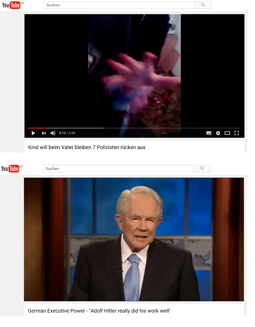 Im ersten wird gezeigt, wie kürzlich ein Kind von Polizei / Jugendamt abgeholt wird (das Jugendamt holt jährlich Zehntausende Kinder in Deutschland...)