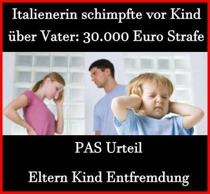 Eine Italienerin muss 30.000 Euro Strafe zahlen, weil sie sich vor ihrem Sohn wiederholt negativ über dessen Vater geäußert hat. Damit sei das Ansehen des Vaters vor dem Kind beschädigt worden, urteilte ein Zivilgericht in Rom.