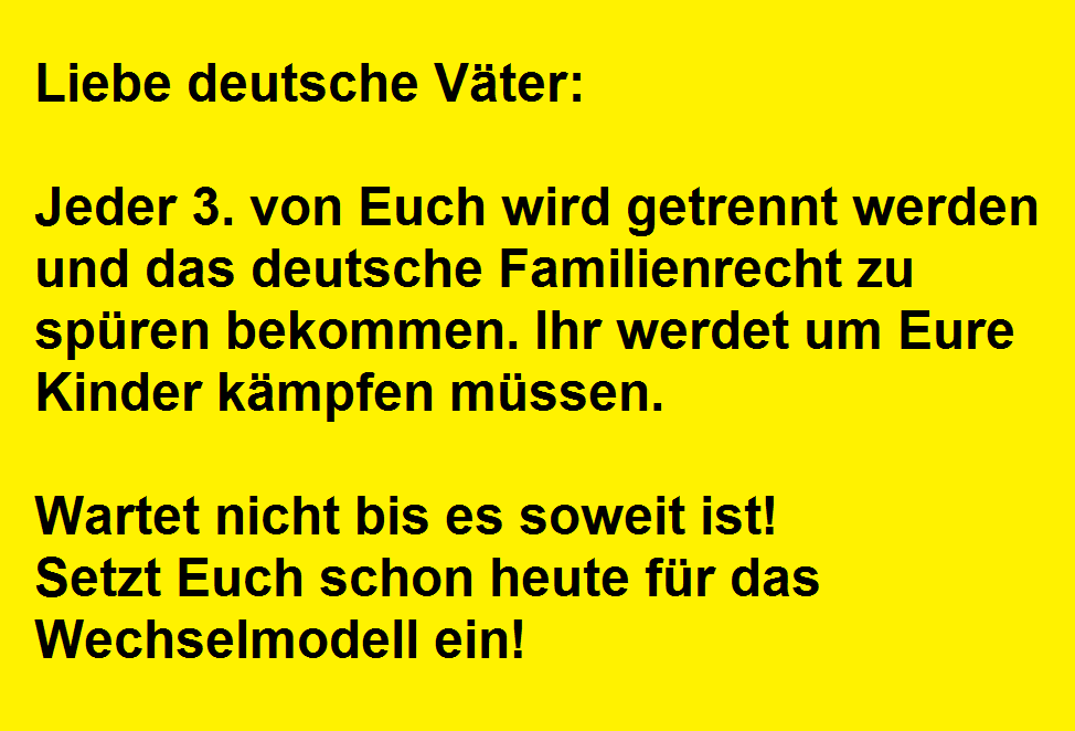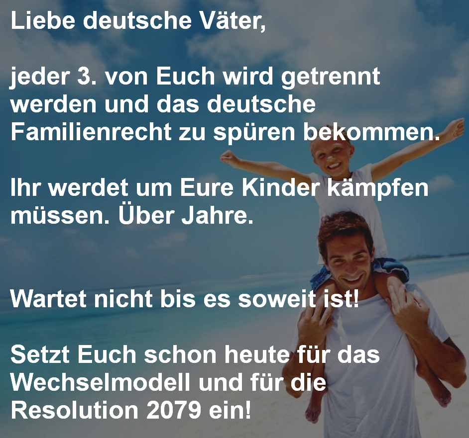 Das soll uns aber NICHT stören, denn wir machen hier weiter, für das Wechselmodell und somit auch für die Europarat-Resolution 2079.