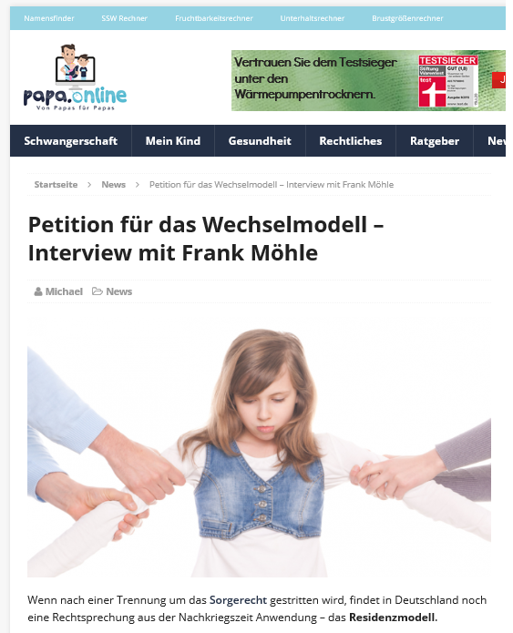 Dass es weiter geht, habe ich Euch vor ein paar Tagen bereits HIER versprochen: papa.online/news/petition-fuer-das-wechselmodell-interview-mit-frank-moehle/