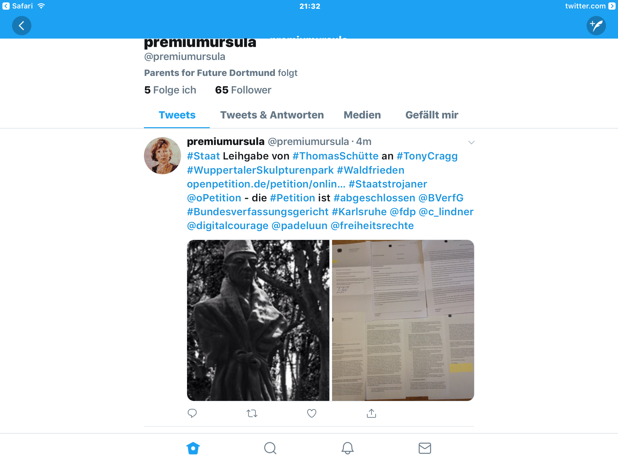 Im Unterschied zu Greta Thunberg die keine Erwarung mit ihrer FridaysforFuture Bewegung hatte ( laut Interview Anne Will) hatte ich eine Erwartungshaltung ! an meine Petition. Ich persönlich hatte gehofft das mich möglichst viele Menschen unterstützen und dass das Staatstrojaner Gesetz aufgehoben wird.
