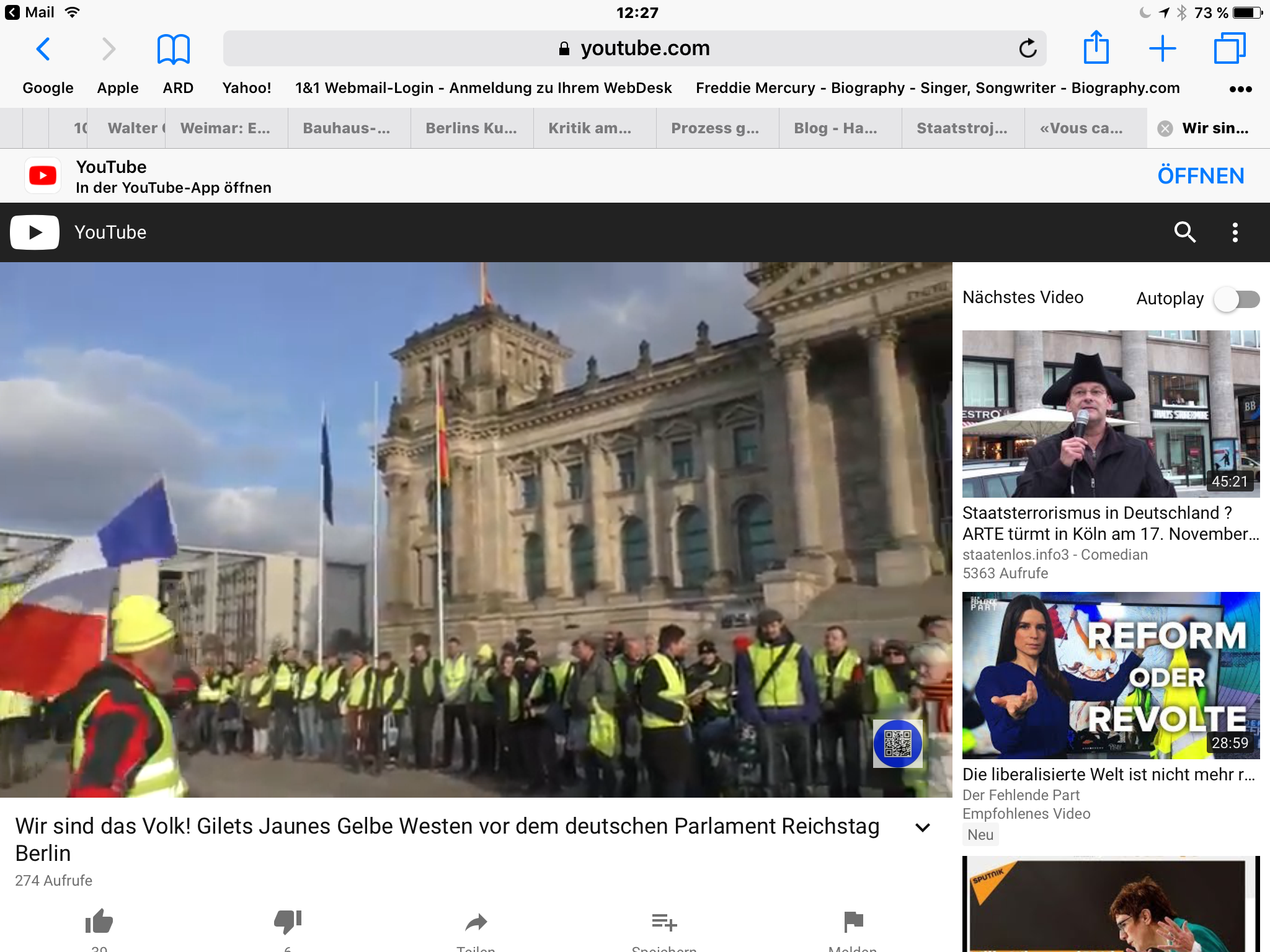 m.youtube.com/watch?v=HfV0Yyi5R2o Gelbwesten vor dem Deutschen Reichstag in Berlin