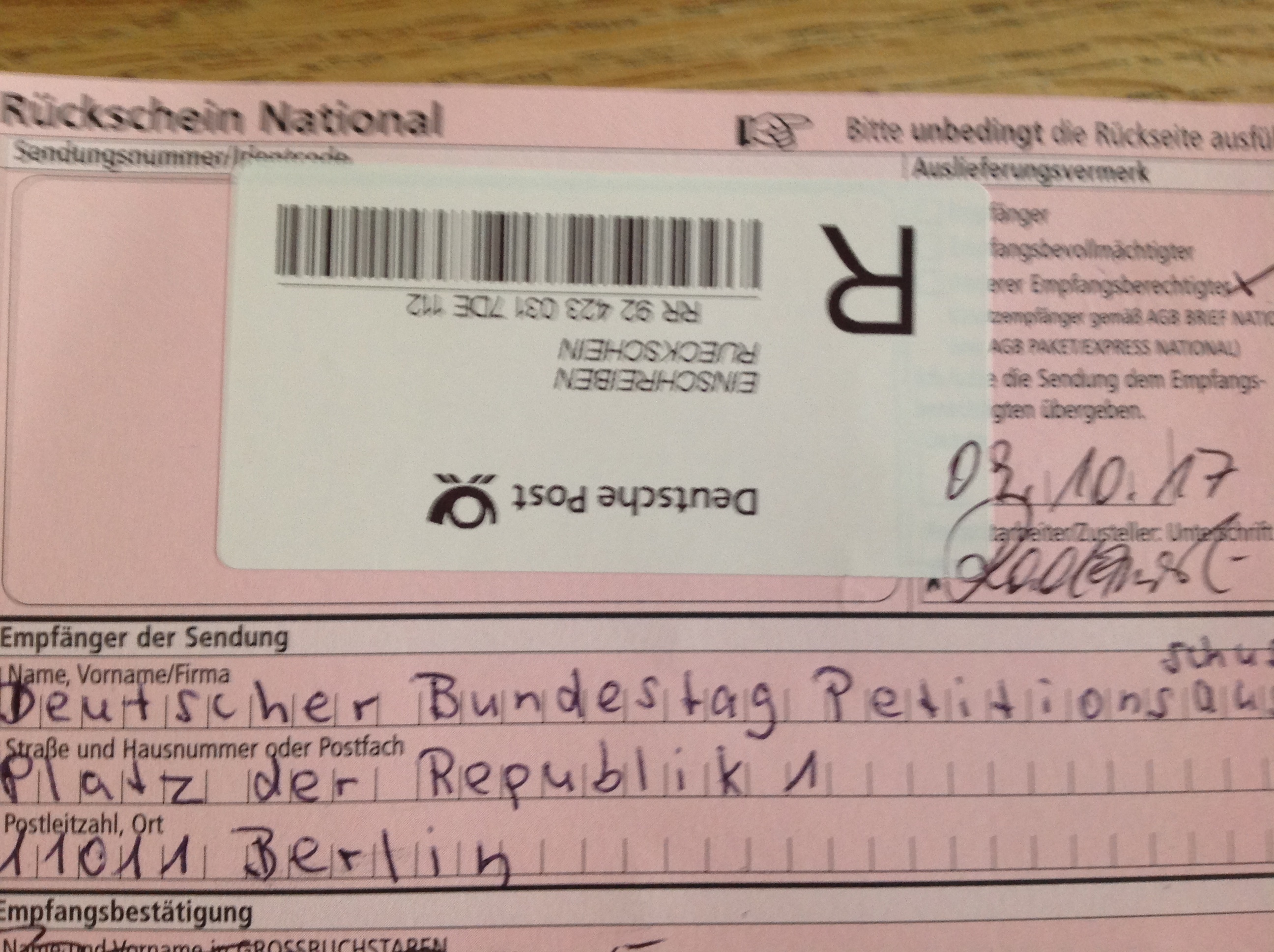 Die Petition wurde an den Bundestag neuer Petitionsausschuss gerichtet !