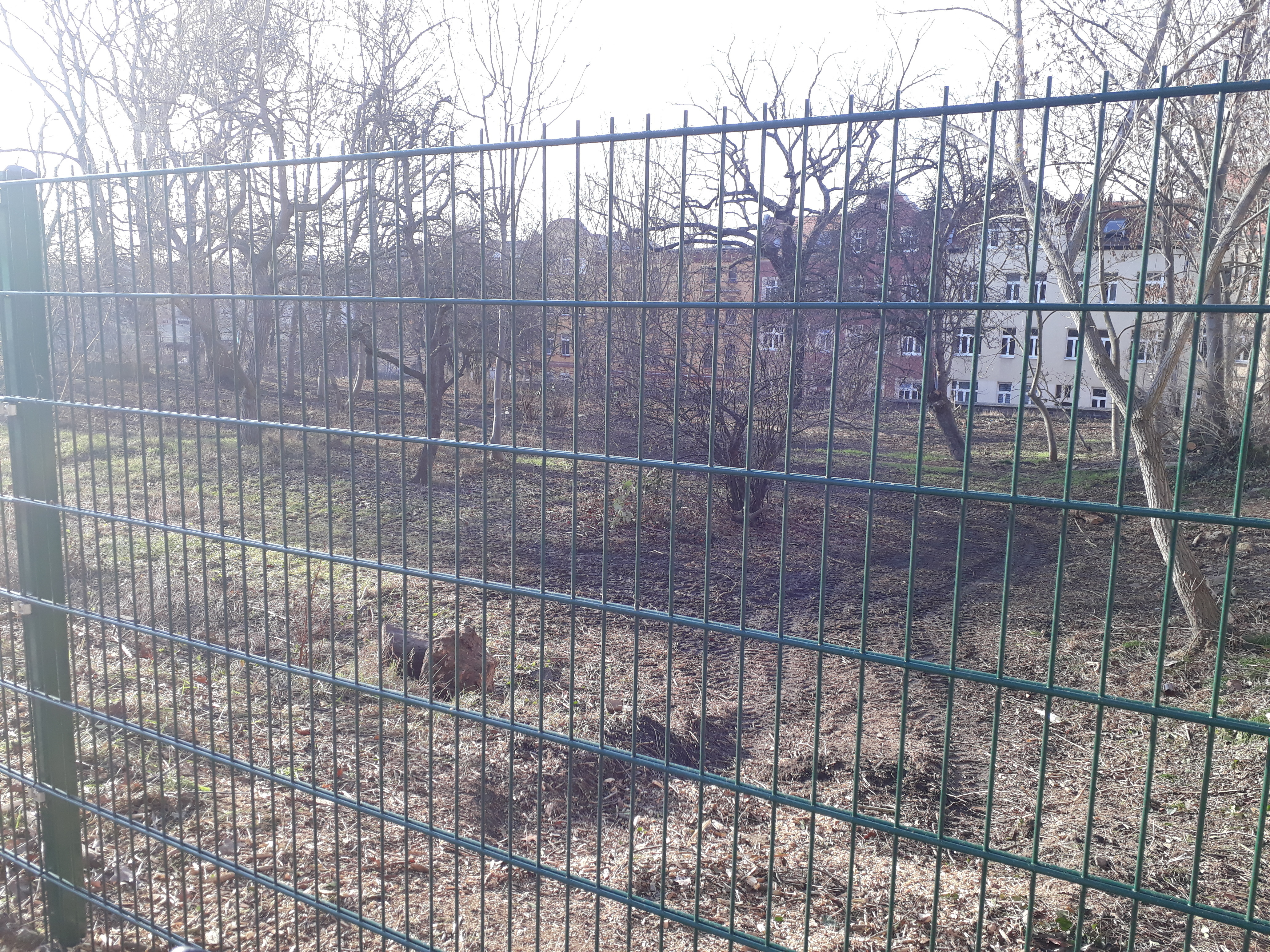 Mittlerweile haben wir auch konkret eine neue Fläche, die wir gerne öffnen und nutzen wollen im Blick. Böllberger Weg 186 (Siehe Foto), wenige Fußminuten vom alten Stadtgarten Glaucha entfernt. Ein ehemaliger Schulgarten, der viele Jahre brach lag, eingeklemmt zwischen zwei städtischen und Sozialen Trägern. Der Boden scheint gut zu sein, die Mirabellen- und Apfelbäume warten nur darauf im Sommer wieder geerntet zu werden, bisher interessierte sich niemand für die Fläche. Allerdings steht diese als Wohnbaufläche im Flächennutzungsplan. Damit demnächst nicht noch die letzten alten Bäume und die letzte ungenutzte Grünfläche im dicht bebauten Viertel Glaucha für "schöner Wohnen" drauf geht, und um ein neues, nachhaltiges Gartenprojekt an dieser Stelle zu verwirklichen, müssen wir die Umwidmung der Fläche in "Gemeinbedarf" erwirken und noch einige Verhandlungen führen.