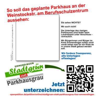 Eure Bürger*inneninitiative STADTGRÜN STATT PARKHAUSGRAU