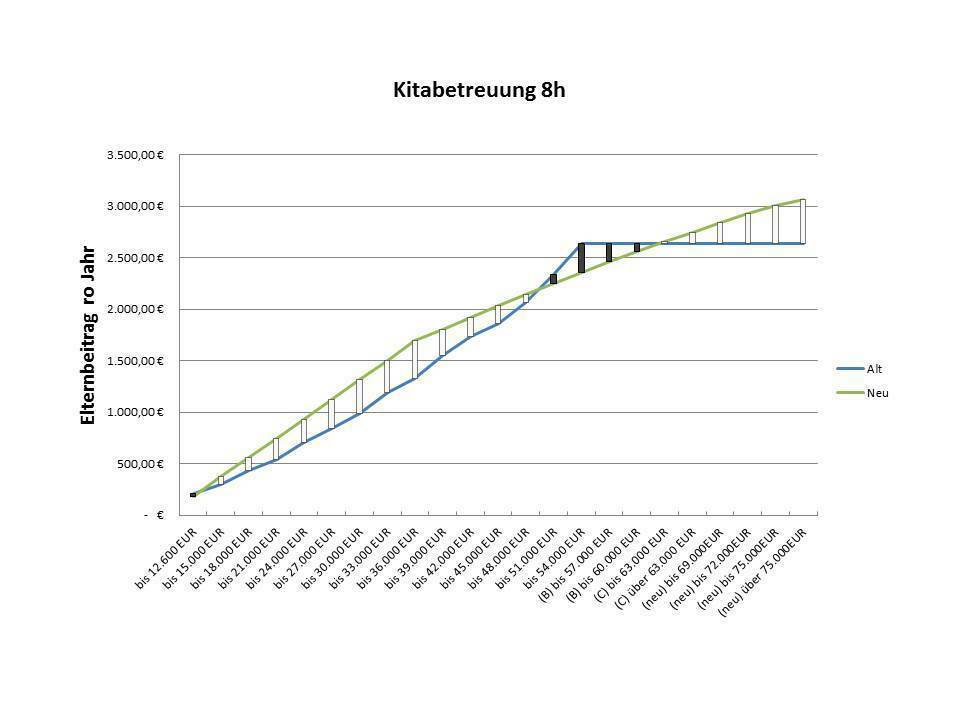 b) für die neue Mitte aller Einkommensklassen gilt der der Status Quo oder es ergeben sich gar Verringerung, bspw. in der Klasse bis 54.000Euro Einkommen mit 4 bis 14% je nach Betreuungszeit.