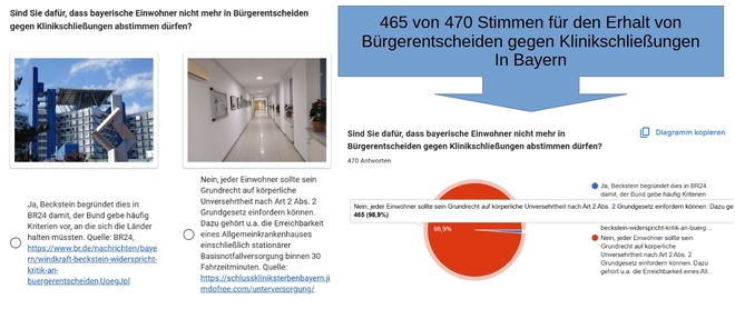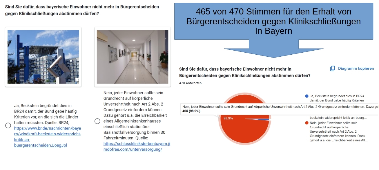 Die Aktionsgruppe Schluss mit Kliniksterben in Bayern begrüßt die Organisationsverfügung von Bundesgesundheitsministerin Nina Warken, zur Auflösung der Projektgruppe 'Bundes-Klinik-Atlas'. 1 Damit sind nachträglich wesentliche Forderungen der Petition „Stoppen Sie in 2 Wochen im Bundesrat das Krankenhaustransparenzgesetz“ erfüllt, die wir vor der Zustimmung des Bundesrats zu Ex-Bundesgesundheitsminister Karl Lauterbachs Klinikatlas an alle MinisterpräsidentInnen der Bundesländer eingereicht hatten. 2