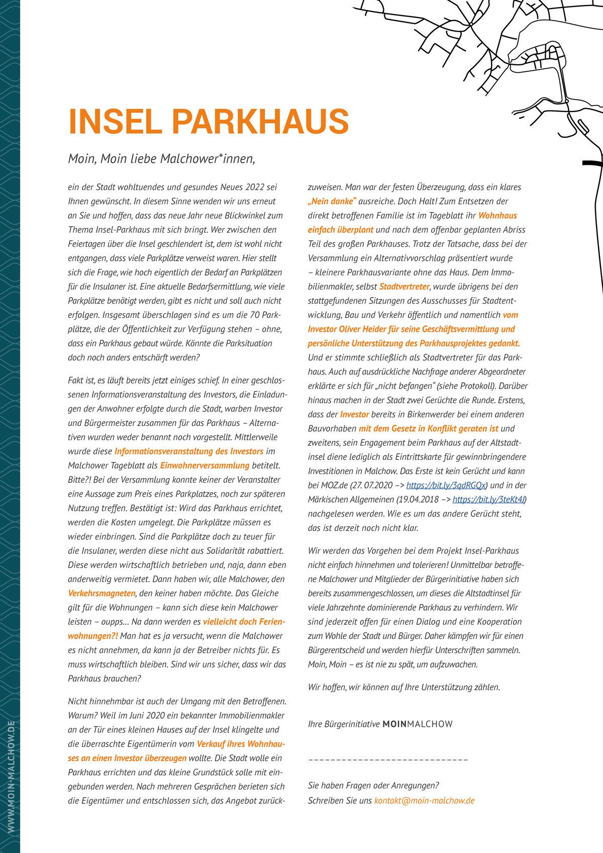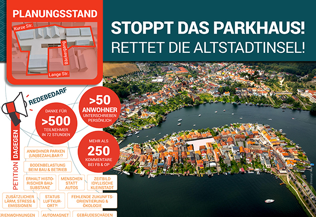 Neuer Titel: KeinStoppt Parkhausdas aufParkhaus! unsererRettet die Altstadtinsel in Malchow! Verkehrsberuhigung jetzt!