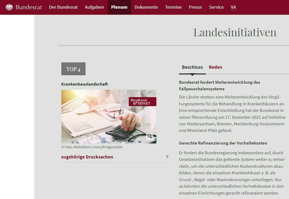 Die Aktionsgruppe Schluss mit Kliniksterben in Bayern begrüßt die Bundesratsinitiative vom 17.12.2021 Drucksache 804/21 (Beschluss) zur Weiterentwicklung des Fallpauschalensystems. *1)