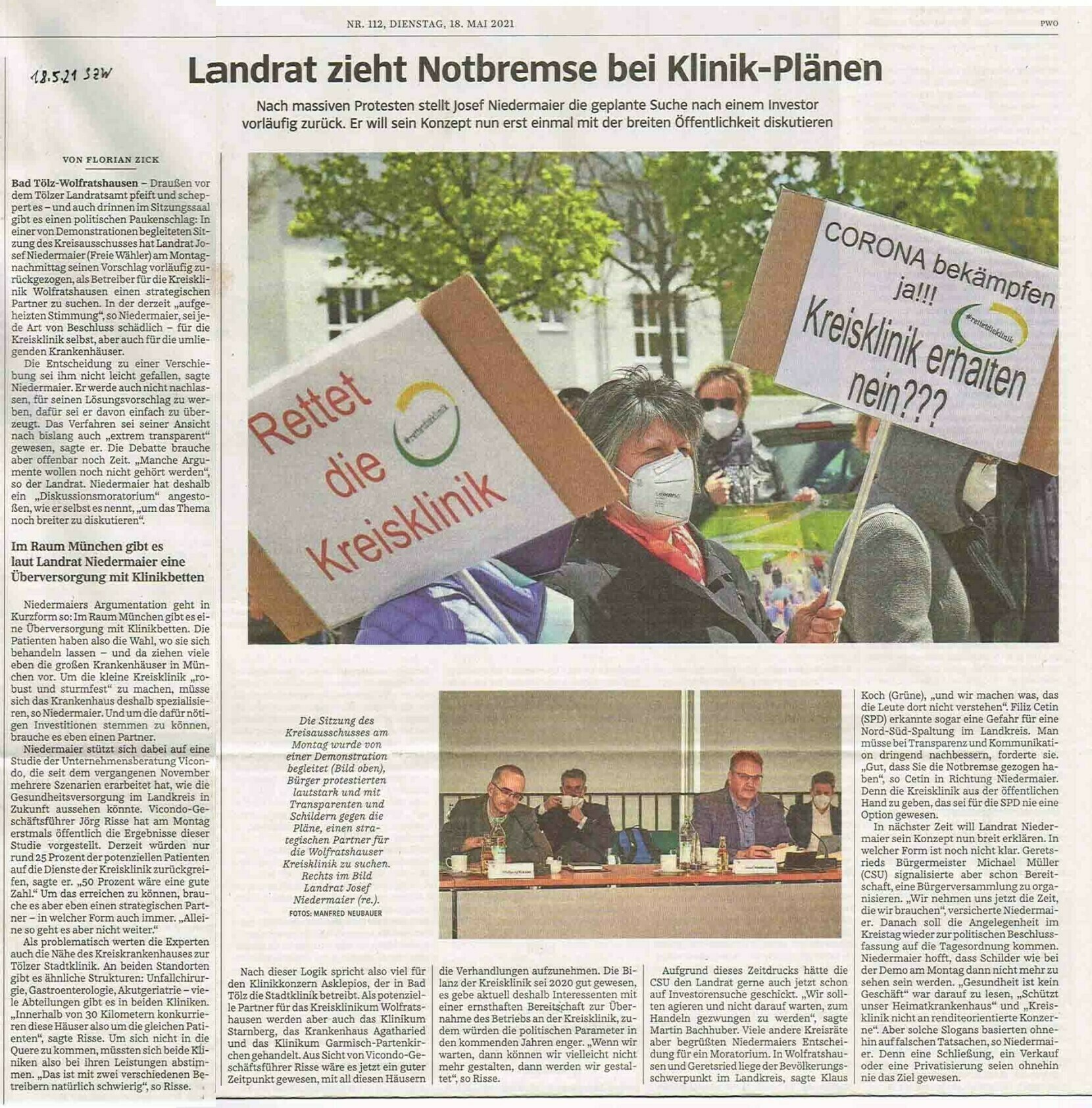 Veräußerung oder Fusion der Kreisklinik Wolfratshausen ausgesetzt.