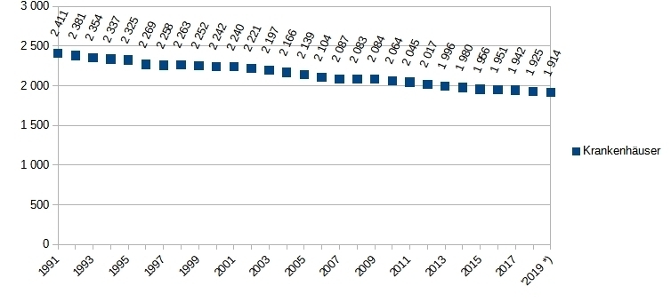 1.914 KH (2018: 1.925) = - 11 Krankenhäuser = ca 1 KH-Schließung je Monat 2019