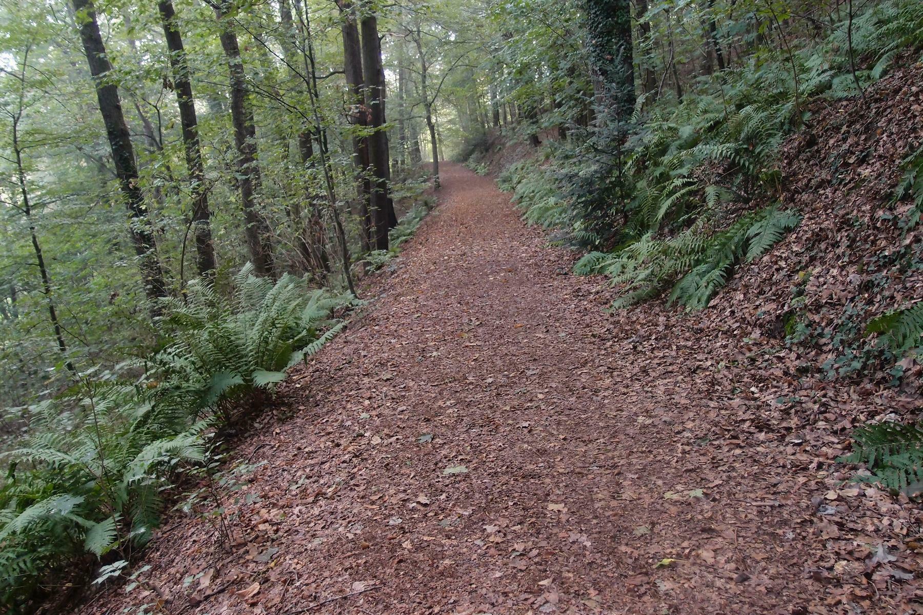 Schotterpiste am Berg, macht einen sportlichen Abstieg aus dem Stadtpark erforderlich