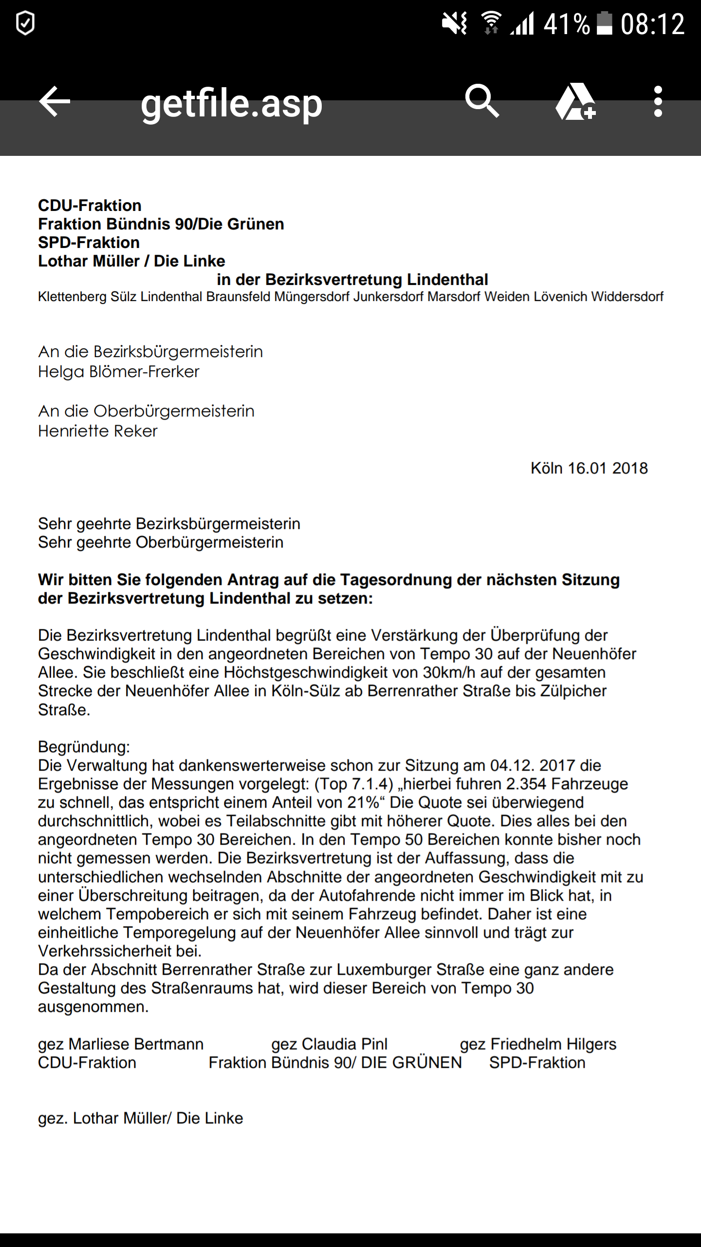 ....wie Politik und Stadtverwaltung mit der Umsetzung von Tempo 30 auf der ganzen Neuenhöfer Allee und Mommsenstr. bis zur konkreten weiter verfahren.